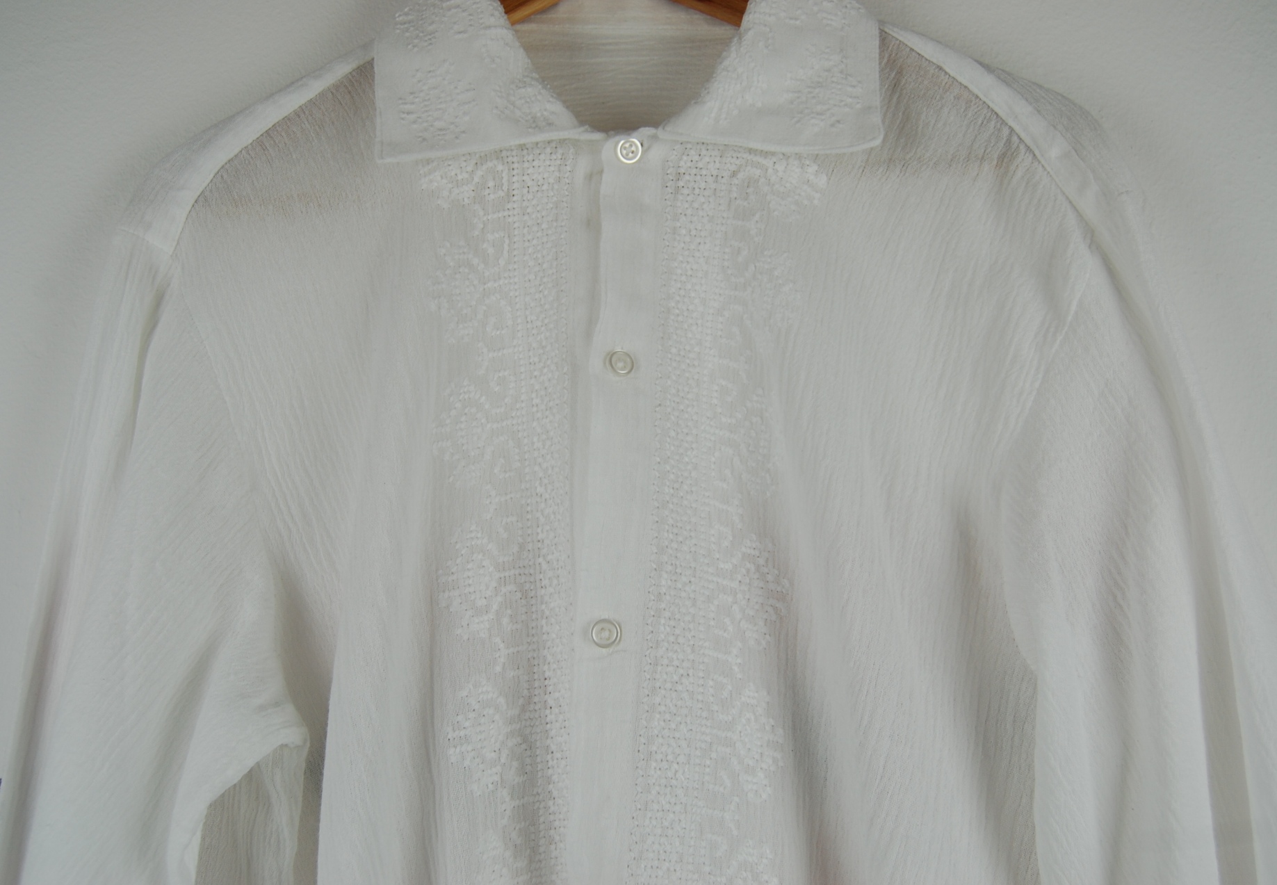 Cămașă cu mânecă lungă inspirată din motive tradiționale românești, brodată integral manual pe pânză topită 100% bumbac.