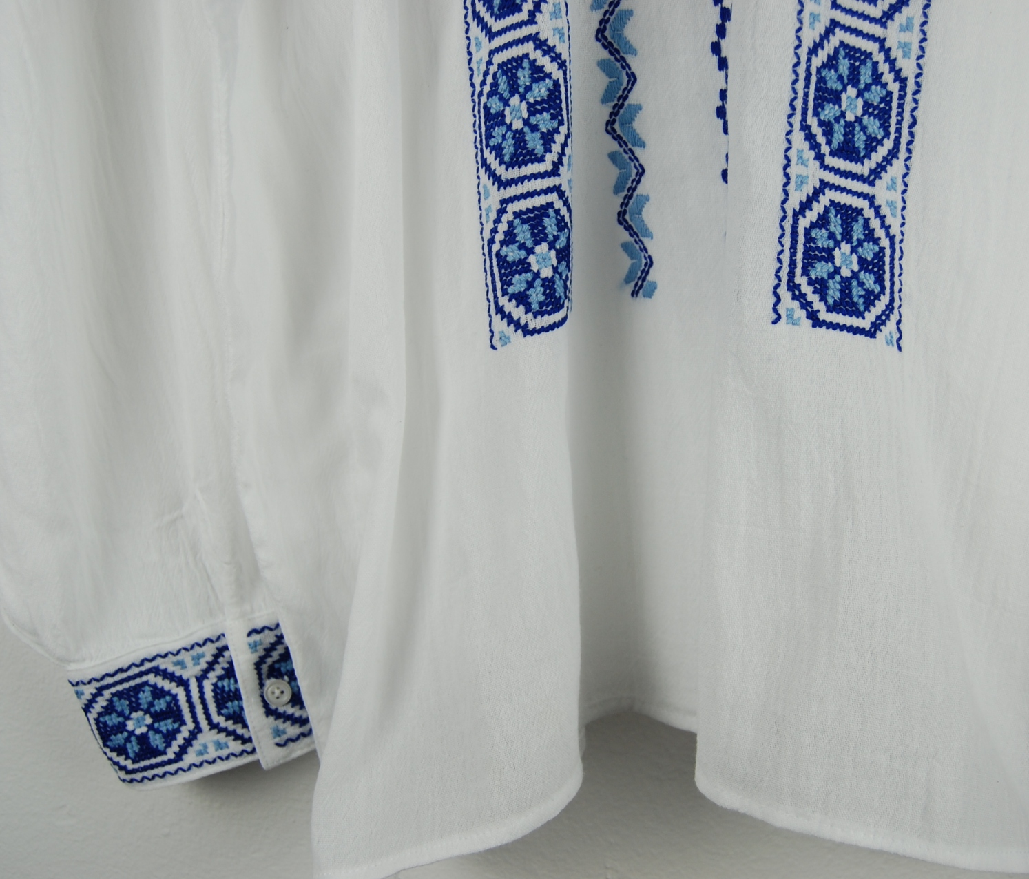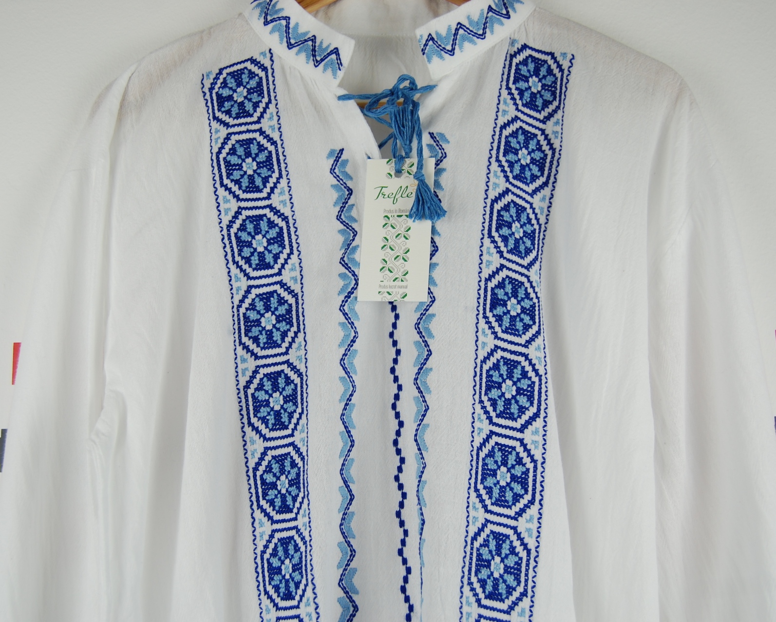 Culoare broderie: două nuanțe de albastru.