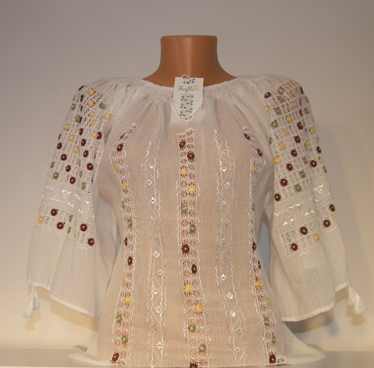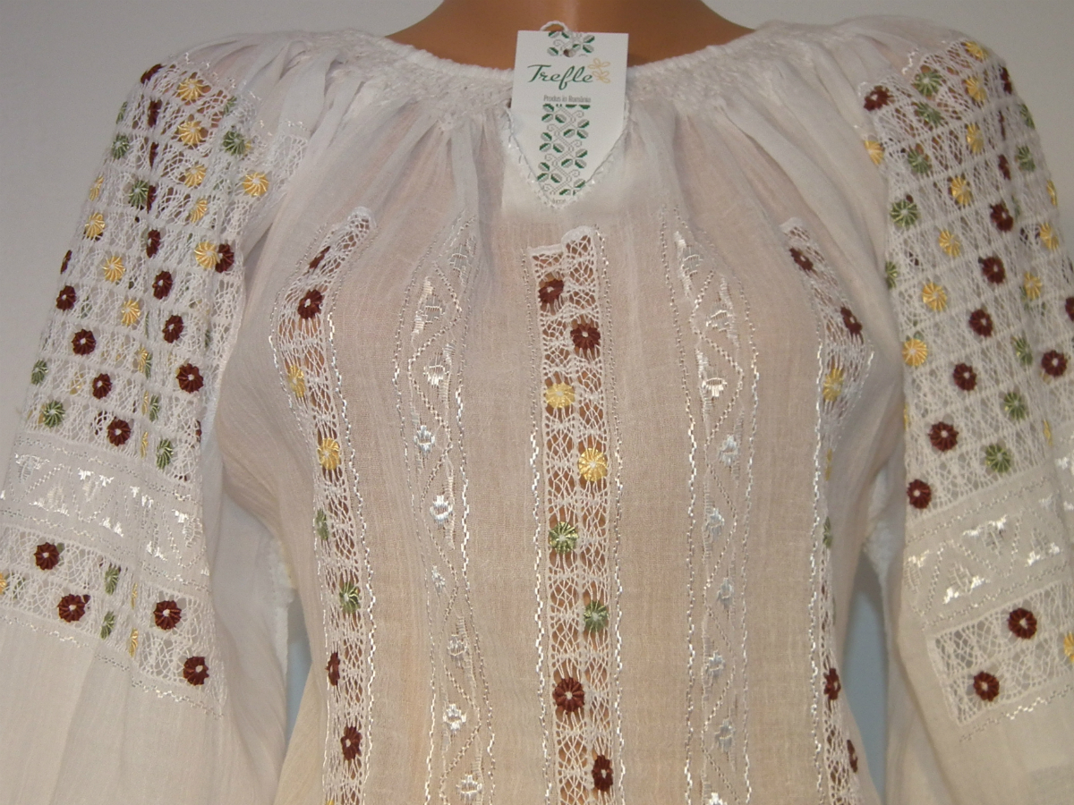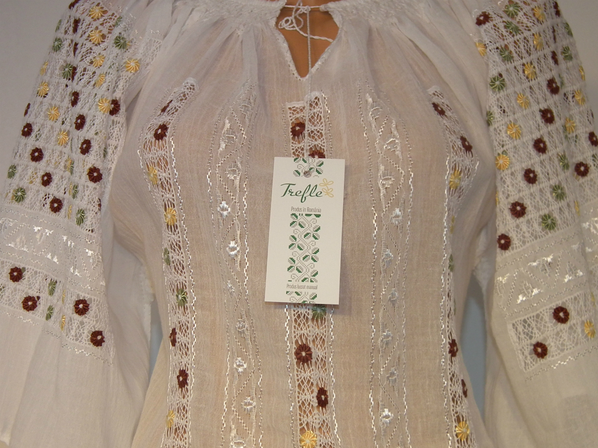 Ia fascinează prin complexitatea broderiei „Ajur cu Bumbi”, broderie lucrată manual direct pe pânză.